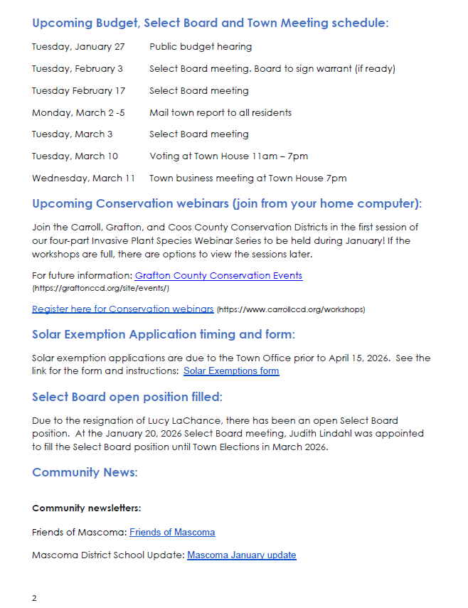 SOLAR EXEMPTIONS: Solar exemption applications are due to the Town Office prior to April 15, 2026. See page 2.