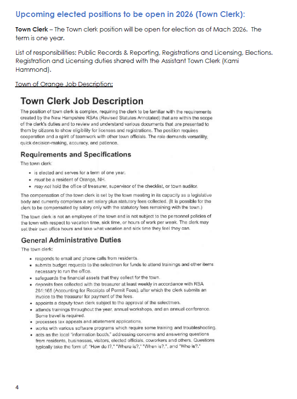 Town of Orange NH: Town of Orange newsletter Vol. 2 No.4 January 28, 2026