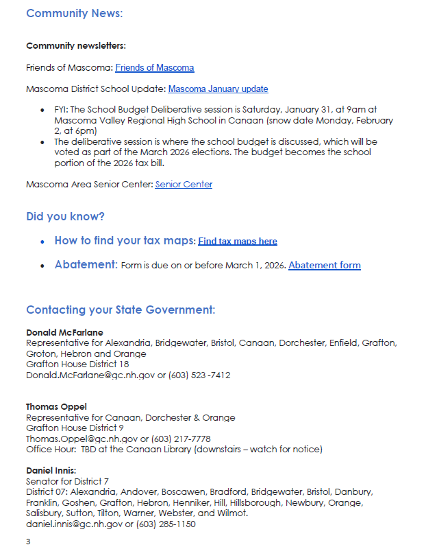 Town of Orange NH: Town of Orange newsletter Vol. 2 No.3 January 21, 2026 →