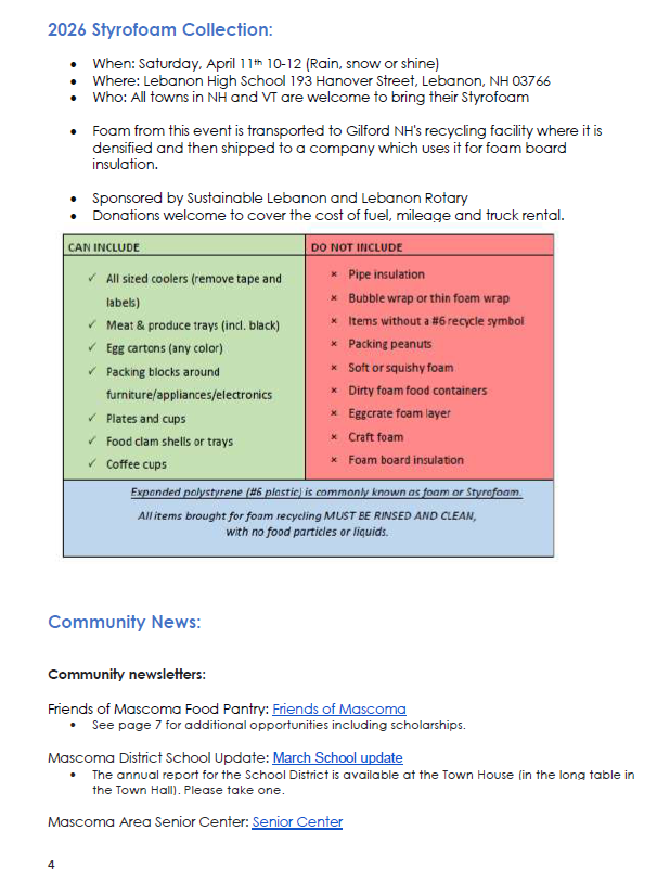 Styrofoam Collection: Saturday, April 11th. More details on page 4.