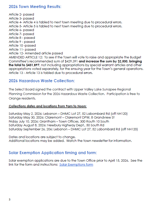 Hazardous Waste Collection: see page 3 for the collection dates and times. Additional collection dates may be added, so stay tuned.
