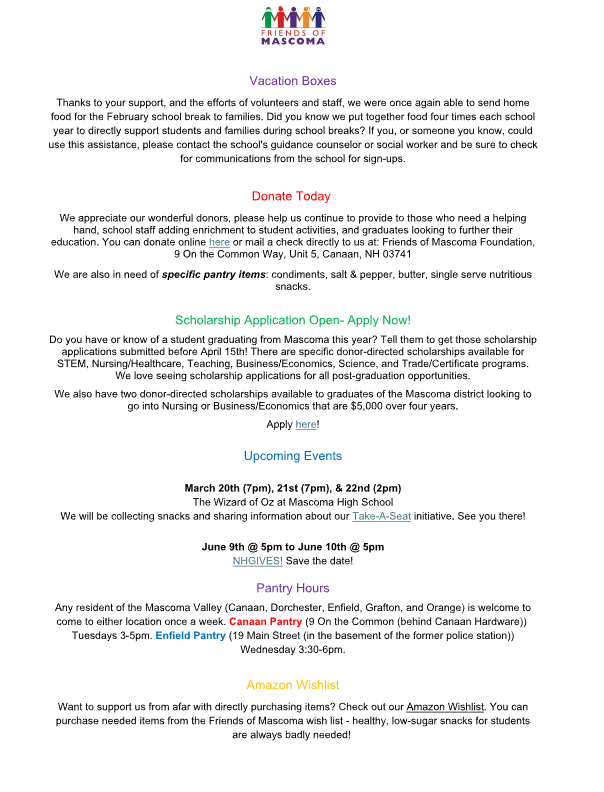 Parks and Recreation Commission: Kathy Stacy (Hayeskellen52@gmail.com or 603-304-7733)