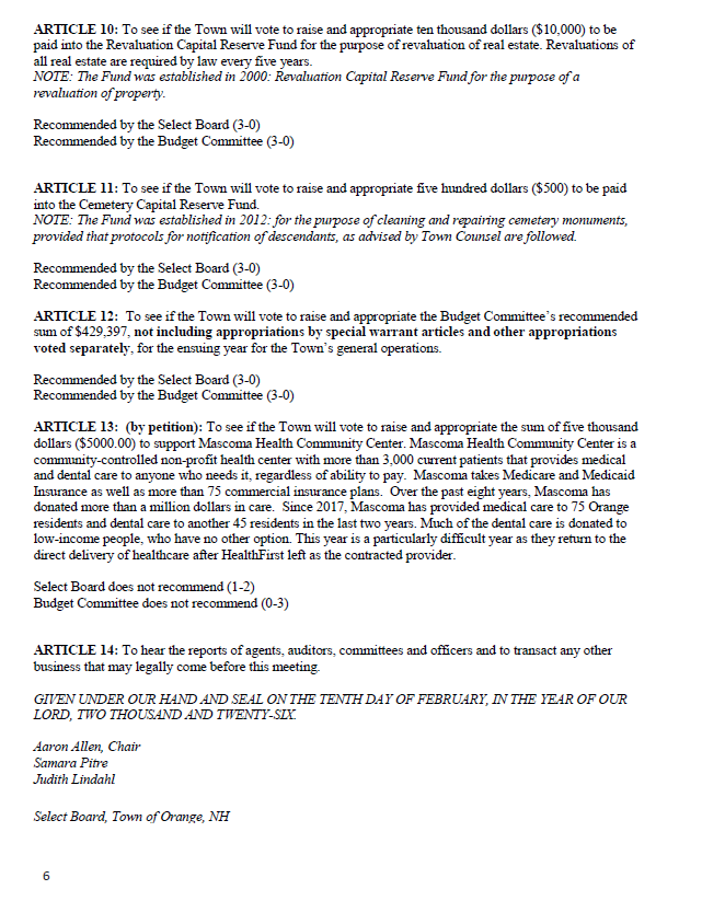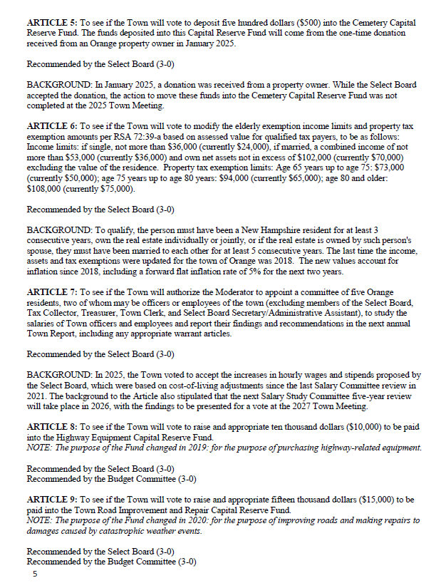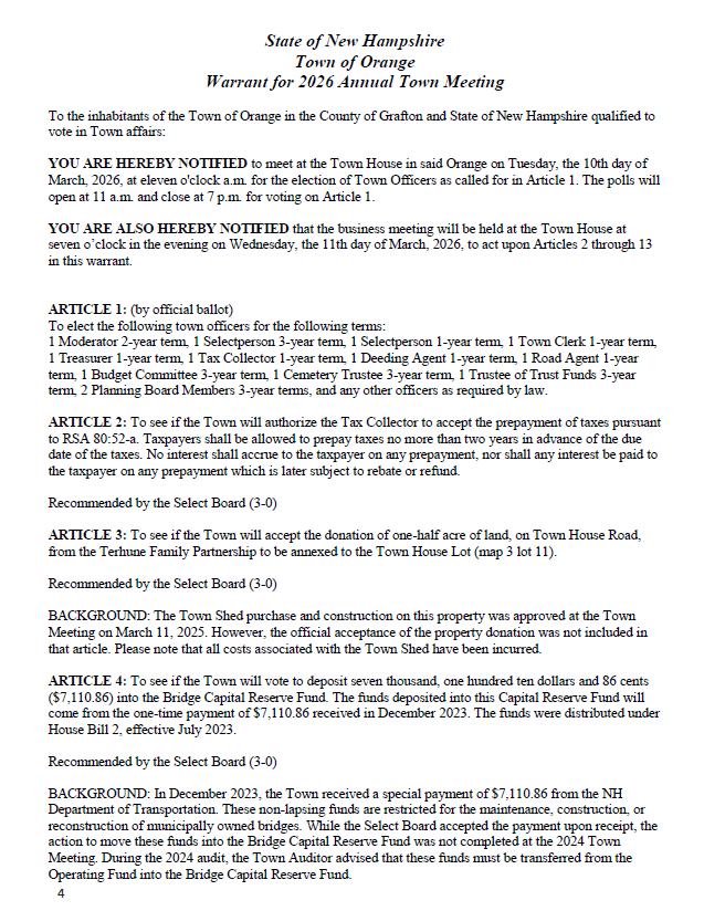 Town of Orange NH: Town of Orange newsletter Vol. 2 No.9 March 4, 2026